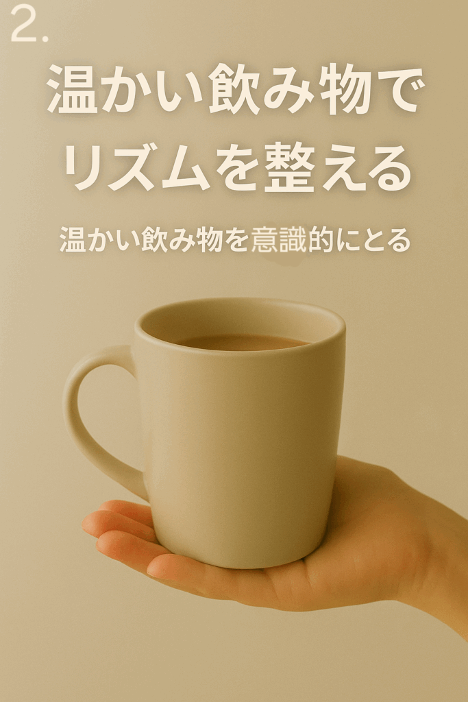 白湯やハーブティーなど、ぬるめの温度で“ほっとする時間”を意識して。